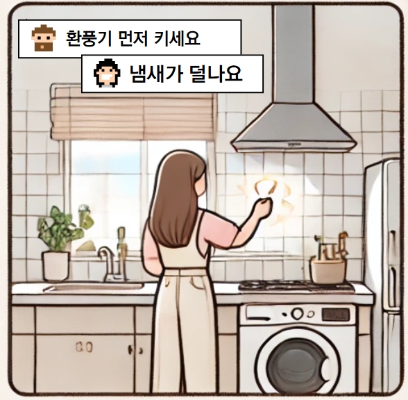 - 에어프라이어 요리 시엔 창문보다 환풍기 먼저 작동