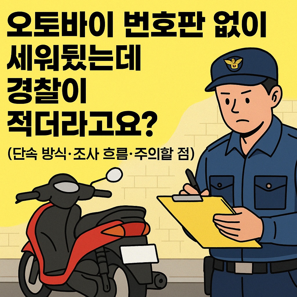 오토바이 번호판 없이 세워뒀는데 경찰이 와서 적더라고요?
