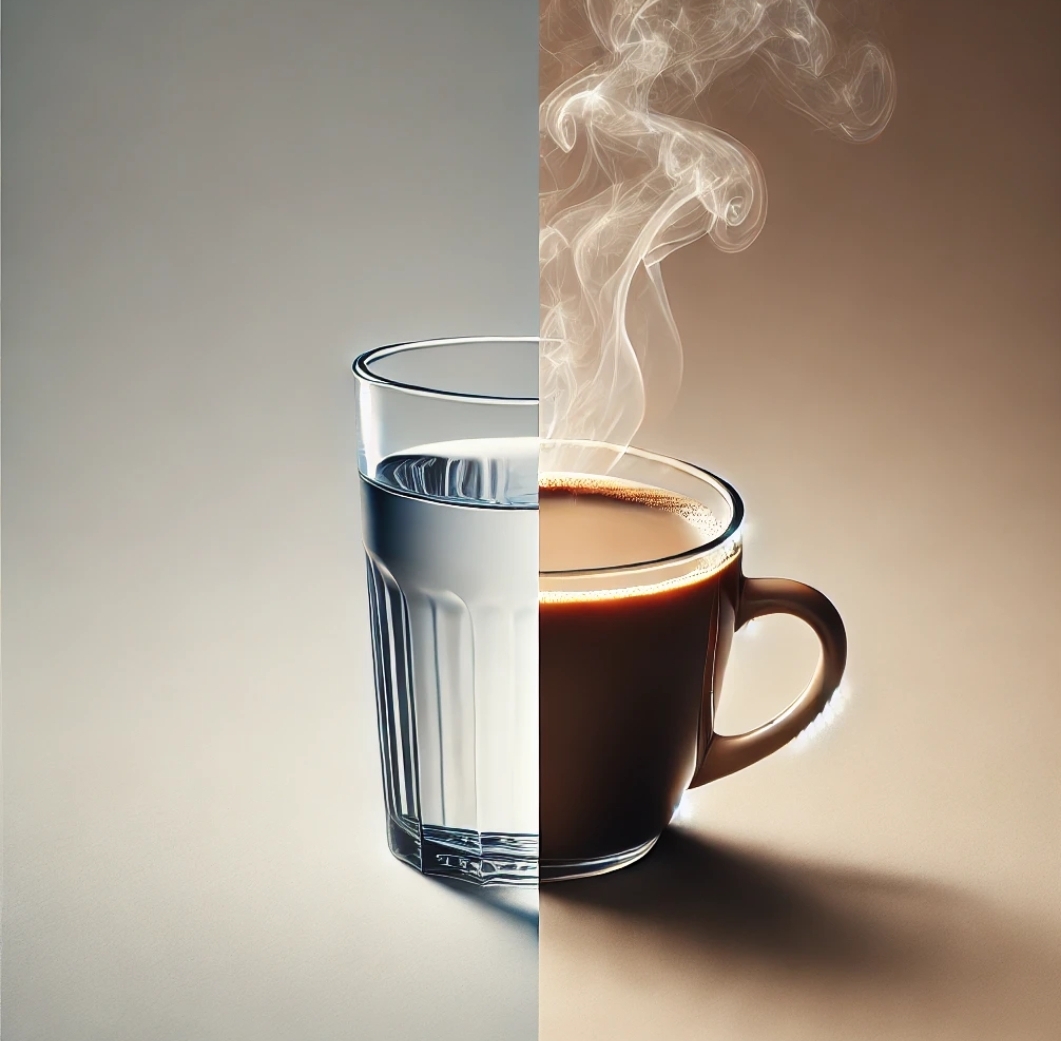 커피 한 잔을 드실 때 물 한 잔도 함께 드시면 체내 수분 및 미네랄 균형을 유지할 수 있습니다.