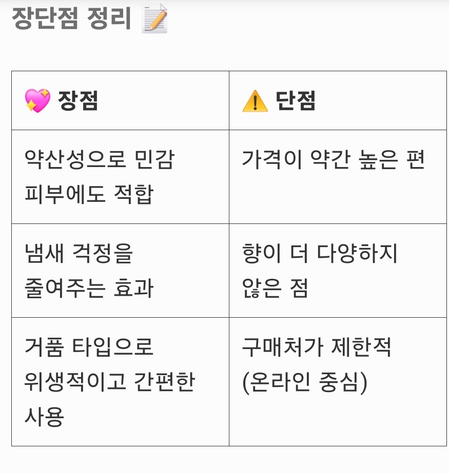 냄새 걱정도 줄이고, 피부에도 순한 제품을 찾는 분들께 꼭 추천드리고 싶습니다.