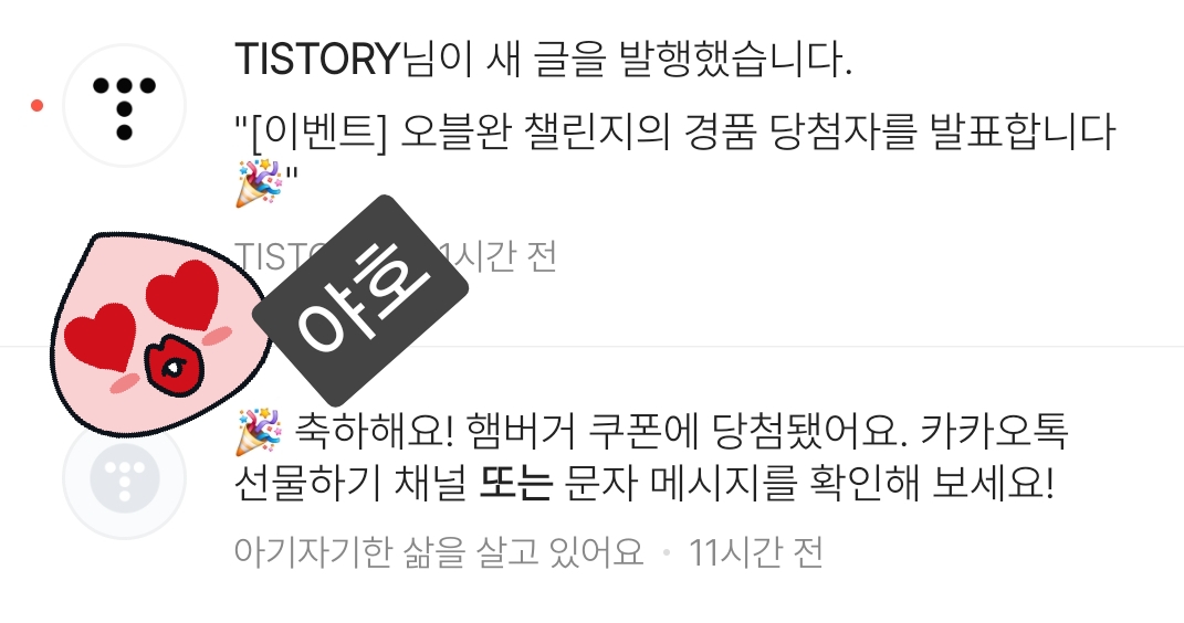 오늘은 제가 티스토리 오블완 이벤트에 당첨된 이야기를 들고 왔어요~ 😆
