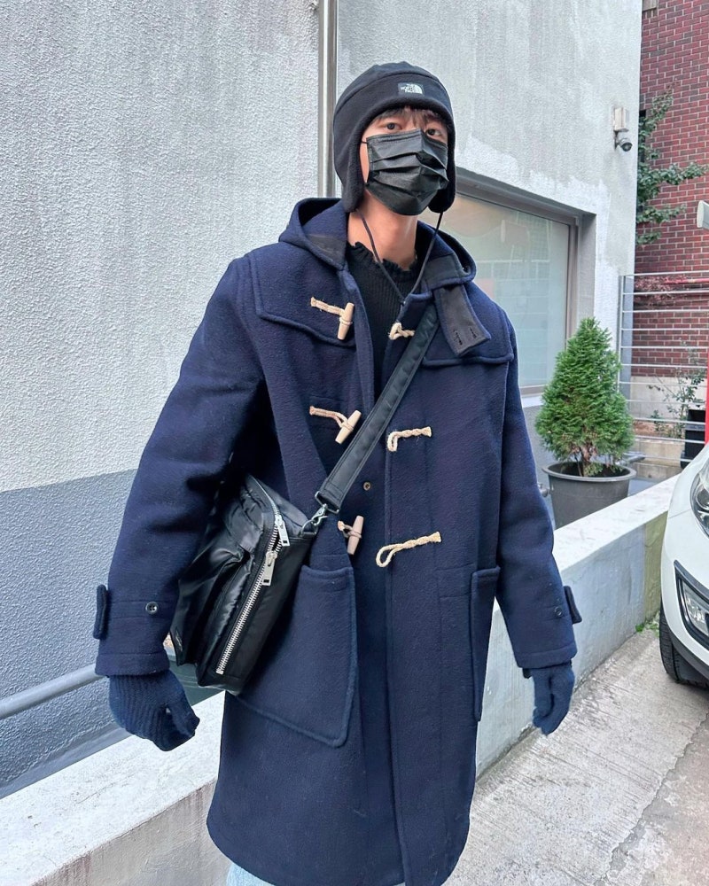 빅 버튼과 후드가 달린 더플 코트는 캐주얼하면서도 클래식한 분위기를 줍니다. 아메카지 룩에서 빠질 수 없는 아이템이에요.