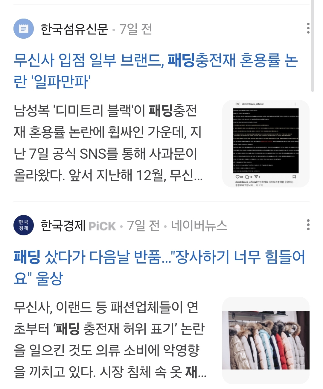 가을겨울동안 쌓아뒀던 패딩들이 갑자기 팔리고 있다는 뉴스역시 패딩을 이번에 사야하나?